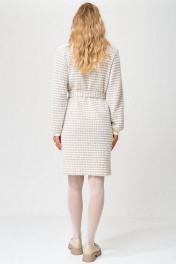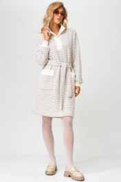 Трикотажное платье от LAIKONY свободного силуэта длиной миди. Вырез горловины платья «под горло», с втачной стойкой. Перед платья с нагрудными вытачками, втачной планкой, 2-мя накладными карманами. Спинка цельная, в боковых швах обработаны разрезы. Рукава втачные одношовные длинные, с притачными манжетами. В комплект идет пояс из основной ткани. Трикотаж средней плотности, хорошо тянется. Декор может отличаться от представленного на фотографии. Длина изделия по спинке 99 см, длина рукава 61 см. Уютное повседневное платье длиной за колено для прохладной осени и зимы.