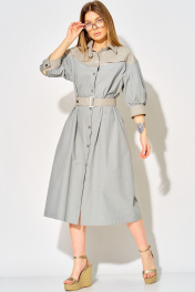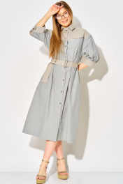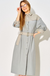 Платье с стиле ""сафари"" от LAIKONY свободного силуэта длиной миди. Платье расширено к низу, длина ниже линии коленей. Воротник с отрезной стойкой, застежка центральная на шесть пуговиц. Перед платья украшен кокетками с горизонтальным подрезом и клапанами, что создает интересные акценты. Спинка с фигурной кокеткой и декоративным элементом. Рукава втачные длиной ¾ с притачными манжетами и застежкой на одну кнопку, по шву аккуратные разрезы, обработанные окантовкой. Линия плеча спущена. Платье выполнено из натуральной ткани, ткань не тянется. Декор может отличаться от представленного на фотографии. В комплекте съемный пояс из основной ткани. Позволяет акцентировать талию, добавляя вашему силуэту женственности. Длина изделия по спинке 118,5 см, длина рукава с манжетой 36 см. Это платье — идеальный выбор для любого случая: будь то вечерний выход или повседневная прогулка. Позвольте себе выглядеть безупречно и чувствовать себя уверенно в этом стильном и универсальном наряде!