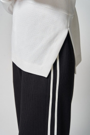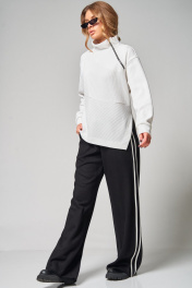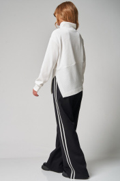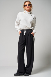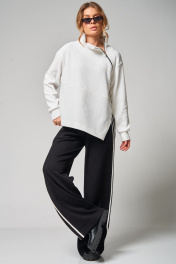 - ОписаниеСтильный трикотажный комплект от LAIKONY свободного силуэта, состоящий из джемпера и брюк. Джемпер длиной до линии бедер. Деталь переда джемпера с кокеткой слева, в шве обработана застежка на тесьму-молнию, переходящая на стойку воротника. На уровне линии талии по переду и спинке асимметричным подрез. Рукава втачные одношовные, с притачными манжетами. Линия плача спущена. Джемпер с модной ассиметричной линией низа. Длина джемпера по спинке 61-64 см в зависимости от размера, длина рукава 55 см от шва втачивания. Брюки широкие прямые. Пояс притачной, в пояс вставлена эластичная тесьма и декоративный шнур. По боковым швам настрочены две вертикальные отделочные тесьмы, обработаны наклонные карманы. Длина брюк 105 см. Декор может отличаться от представленного на фотографии. Трикотаж средней плотности, хорошо тянется. Наш модный комплект идеально подойдет для повседневного использования и прогулок на свежем воздухе с друзьями.