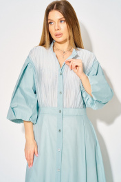 Хлопковое летнее платье от LAIKONY станет настоящим украшением вашего гардероба! Платье полуприлегающего силуэта с изысканным коническим кроем юбки создает романтичный и элегантный образ. Длина платья ниже колен. Вырез горловины «под горло» со стойкой, застёжка центральная на пуговицы. Лиф деталей переда и спинки платья выполнет из трикотажной отделочной ткани, по шву притачивания пояса обработана сборка. Платье отрезное на уровне талии с притачным поясом акцентирует вашу талию, в боковых швах карманы. Линия плеча спущена, рукава втачные длиной ¾ с оригинальной сборкой. Лиф платья выполнен из качественной трикотажной ткани, юбка из текстильного хлопка и имеет частичную подкладку, что гарантирует комфорт в носке. Декор может отличаться от представленного на фотографии. Длина изделия по спинке 123 см., длина рукава 39 см. Дополнив модными аксессуарами, вы можете носить его как на торжественные события, так и в повседневной жизни. Позвольте себе быть неповторимой с этим удивительным платьем!