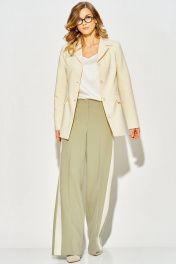 Однобортный жакет LAIKONY свободного силуэта длиной ниже линии бедер. Застежка центральная на петли и пуговицы, воротник отложной пиджачного типа. Детали переда с кокетками и отрезными бочками, в которых обработаны карманы, на уровне линии талии расположены декоративные клапаны. Спинка жакета с кокеткой, нижняя часть с рельефными швами и средним швом, который заканчивается шлицей. Рукава втачные одношовные, по центру вертикальный подрез, внизу шва декоративно прикреплены по 4 пуговицы. Жакет выполнен из костюмной ткани, на подкладке. Ткань не тянется. Декор может отличаться от представленного на фотографии. Длина изделия по спинке 70,5-72,5 см в зависимости от размера, длина рукава 62 см. Шикарный жакет для офиса и деловых встреч. Вместе с нашими брюками L-914 (на фото) или L-942-2 составит стильный запоминающийся образ.