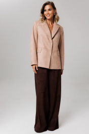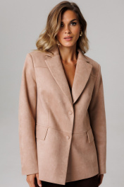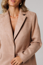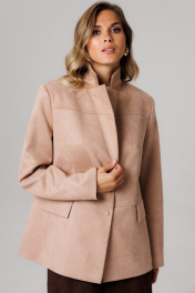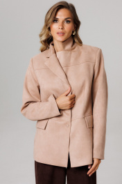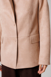 Жакет из экозамши от LAIKONY свободного силуэта на подкладке. Застежка центральная на кнопки. Воротник отложной пиджачного типа. Детали переда с кокетками, отрезными бочками и талиевыми ватачками. В центральных частях переда горизонтальные подрезы, в шве которых расположены прорезные карманы с листочками и клапаном. Спинка жакета с плечевыми вытачками и средним швом. Спинка жакета с кокеткой, нижняя часть со средним швом, который заканчивается шлицей, рельефными швами и горизонтальным подрезом. Рукава длинные втачные двухшовные. Жакет на подкладке. Жакет выполнен из мягкой экозамши. Декор может отличаться от представленного на фотографии. Длина изделия по спинке 68-71 см в зависимости от размера, длина рукава 61,5 см. Наш отличный жакет заменит вам куртку теплой солнечной осенью и весной.