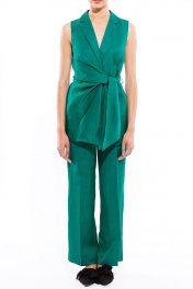 Летние брюки зауженные из текстиля, зеленого цвета Lakbi 41287