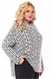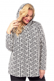 Джемпер свободного силуэта, с капюшоном, выполнен из уютного трикотажного полотна с ворсинкой. По боковым швам – разрезы. Спинка чуть ниже переда. Рукав длинный.