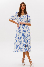 Платье Ларс Стиль 1088 молочно-голубой_принт