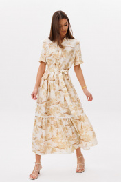 Платье Ларс Стиль 1101 молочно-бежевый_принт