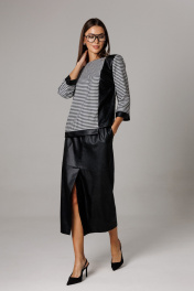 Блуза, юбка Ларс Стиль 1174 молочный-черный