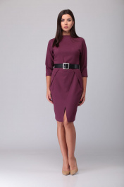 Роскошное платье премиум-класса! В этом платье Вы будете в центре внимания на любом торжестве. Модный силуэт. Чёткие линии подрезов. Шикарная посадка на фигуре подчёркивает женские формы и прекрасно формирует силуэт, предавая ему столь желанное сходство с песочными часами. Модель с втачным, полурегланным рукавом, длиной ¾ с защипом по нижнему краю. С потайной застёжкой- молнией по среднему шву спинки. Горловина с цельнокроеной стойкой. Обработана обтачкой. По полочке фигурные вытачки к центру груди. Спинка с талевыми вытачками и вытачками по горловине. Перед платья по линии талии со складками , придающими форму песочных часов. По переду нижней части платья рельеф в виде запаха; разрез - длиной 16,5 см. Фигурные боковые карманы. Платье без подкладки. Длина платья от талии – 59,5 см. Декоративный съёмный пояс подчёркивает изящество фигуры.