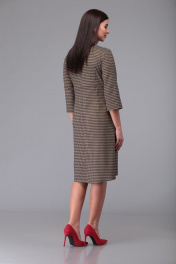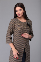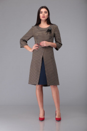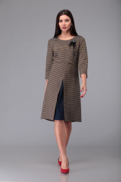 Стильное платье А-силуэта, без подкладки, отрезное по линии талии. Верхняя часть платья переда с притачным рельефом, талевые вытачки на спинке. Горловина обработана обтачкой. Шикарная посадка на фигуре подчёркивает женские формы. Нижняя часть переда - на запах, из-под которого видна притачная нижняя часть платья из отделочной ткани. В среднем шве спинке платья обработана потайная тесьма-молния. Рукав – втачной, 1-шовный, длиной 44 см. Декор – брошь может отличаться от заявленного на фото. В этом платье Вы будете в центре внимания на любом торжестве!