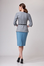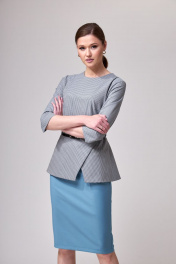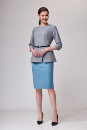 Шикарный комплект прилегающего силуэта состоящий из блузона и юбки. Блузон с притачной баской на запах на уровне талии. По переду блузона - нагрудные вытачки и притачной бочок, спинка с талевыми вытачками. В среднем шве спинки потайная застежка-молния. Горловина обработана обтачкой. Длина блузона по спинке: 60,5 см. Рукав - втачной, двухшовный, длина: 43,5 см, по локтевому шву - разрез. Юбка на подкладке, зауженная к низу. По среднему шву потайная застежка на тесьму-молнию, внизу - разрез. Верхний край обработан обтачкой. Длина юбки по боковому шву - 64 см. В комплекте идёт ремень. Данный комплект достоин самых стильных модниц! В нём Вы будете себя чувствовать на высоте!