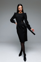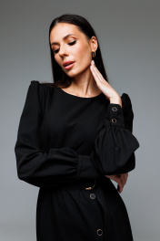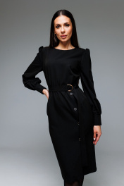 Черное платье из текстиля с смещенным разрезом и талиевыми вытачками Ларс Стиль 847