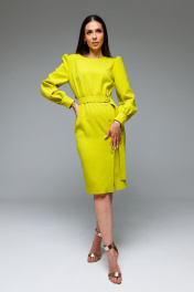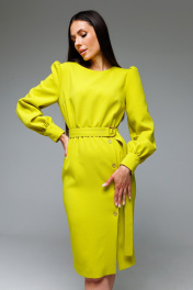 Желтое платье с талиевыми вытачками и смещенным разрезом Ларс Стиль 847/2
