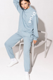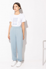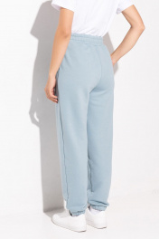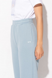 Брюки - джоггеры из трикотажа на резинке по поясу и по низу. В боковых швах расположены карманы. По внутренней стороне пояса имеется функциональный шнурок. Брюки декорированы небольшим принтом "звездочки". Длина брюк по боковому шву - 101 см.