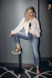 Бомбер oversize из твида, демисезон, белый с пуговицами LECIEL BR01