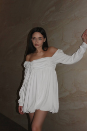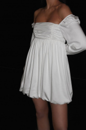 Платье баллон из 100% вискозы, можно носить с открытыми плечами, на подкладке Длина изделия 70 см Длина рукава 68 см