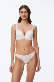 Трусы-слипы с низкой линией талии из эластичного трикотажного полотна (микрофибра). Задняя деталь полностью из эластичного кружева. Подкладка ластовицы из 100% х/б.