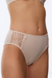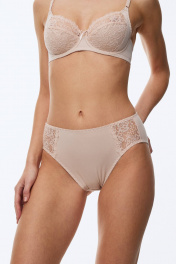 Полноразмерные трусы слипы с высокой линией талии (закрывают пупок), выполненные из хлопка и декорированные вставками из кружева по бокам. Подкладка ластовицы из 100% х/б.