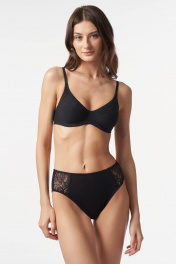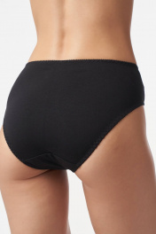 Полноразмерные трусы слипы с высокой линией талии (закрывают пупок), выполненные из хлопка и декорированные вставками из кружева по бокам. Подкладка ластовицы из 100% х/б.