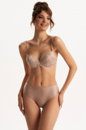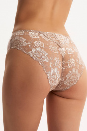 Трусы с высокой линией талии из эластичного трикотажного полотна (микрофибра). Задняя деталь полностью из эластичного кружева. Подкладка ластовицы из 100% х/б