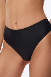 Трусы с высокой линией талии из эластичного трикотажного полотна (микрофибра). Задняя деталь полностью из эластичного кружева. Подкладка ластовицы из 100% х/б
