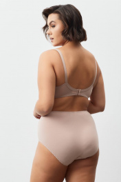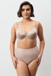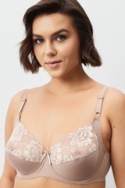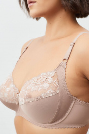 Бюстгальтер с мягкой чашкой, выполненный из эластичного трикотажного полотна и декорированный эластичным кружевом в верхней части чашки. Есть боковая поддерживающая деталь, обеспечивающая дополнительное приподнимание груди. В модели присутствуют каркасы ("косточки"). Бретели регулируются по длине. Ширина бретелей увеличивается пропорционально увеличению размера (1,0 см, 1,5 см, 2,0 см, 2,5 см). В самых маленьких размерах застежка на 1 крючок из двух позиций, в большинстве размеров застежка на 2 крючка из трех позиций; в больших размерах на 3 крючка с выбором из трех позиций.