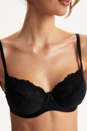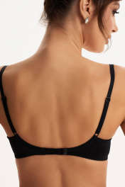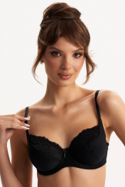 Бюстгальтер с мягкой чашкой, выполненный из эластичного трикотажного полотна и декорированный эластичным кружевом в верхней части чашки. В модели присутствуют каркасы ("косточки"). Бретели регулируются по длине. Ширина бретелей увеличивается пропорционально увеличению размера (1,0 см, 1,5 см, 2,0 см, 2,5 см). В самых маленьких размерах застежка на 1 крючок из двух позиций, в большинстве размеров застежка на 2 крючка из трех позиций; в больших размерах на 3 крючка с выбором из трех позиций. Важная особенность – тройное членение чашки, что обеспечивает скругление формы груди.