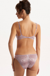 Бюстгальтер из эластичного трикотажного волокна (микрофибра). Формованная чашка (минимальный эффект «пуш-ап» каплевидной формы, расположенный в нижней части чашки) в модели присутствуют каркасы. В качестве декоративного элемента присутствует маленький бантик спереди по центру изделия. Бретели регулируются по длине, но не отстегиваются.