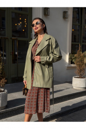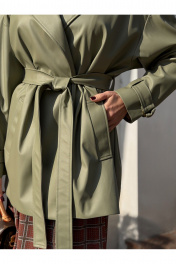 Хотите быть на пике модных тенденций? Укороченный тренчкот - главный тренд верхней одежды весной 2026 года, сочетающий элегантность классики и динамику укороченного кроя. Этот фасон делает образ собранным, выгодно подчеркивает талию и хорошо подходит для активного городского стиля. Тренчкот из экокожи - это функциональная замена привычным жакетам и отличная инвестиция в гардероб, которая придаёт образу актуальность. Тренч выполнен из высококачественной экокожи, устойчивой к истиранию и погодным условиям. Подкладка из вискозного полотна обеспечит комфорт. Тренч выполнен на запах, не имеет застежки и фиксируется на комфортный пояс. Рукав длинный со спущенным плечевым швом и шлястиками на манжетах, которые фиксируется металлическими пряжками, что позволяет фиксировать рукав по высоте. Длина изделия по спинке - 77см, длина рукава - 55см.