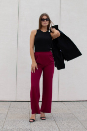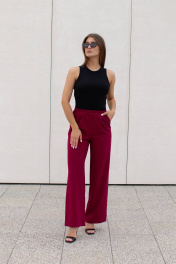 Красные брюки палаццо широкого кроя из легкой ткани Legend Style P-015 бордовый