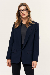 Деловой удлиненный жакет с карманами и шальковым воротником LeNata 12366 синий