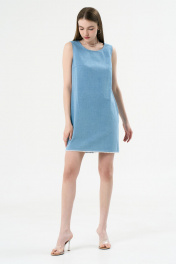 Летний джинсовый сарафан с V-образным вырезом и бахромой LeNata 16424 голубой