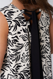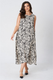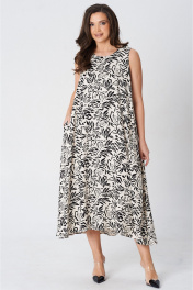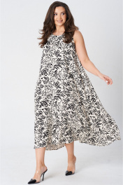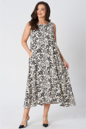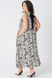 Платье женское длинное расширенное к низу без подкладки. Вырез горловины по переду округлый, по спинке V-образный с навесными петлями и декоративной завязкой. В боковых швах расположены функциональные карманы. Платье без рукава. Низ фигурный
