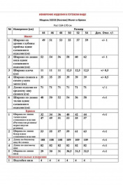 Комплект, состоящий из жилета, джемпера и брюк. Жилет удлинённый на х/б подкладке, прямого силуэта, застежка двубортная на петли-пуговицы, край борта закруглен. Воротник пиджачного типа, по переду имеются прорезные карманы с клапаном. Спинка со средним швом. Джемпер прямого силуэта со спущенной линией плеча. Рукав втачной, одношовный, короткий. Вырез горловины с притачной планкой из основной ткани. По переду декоративный принт (печать). Брюки прямые на притачном поясе с резинкой. По переду функциональные карманы.