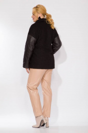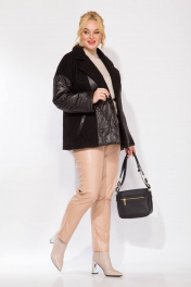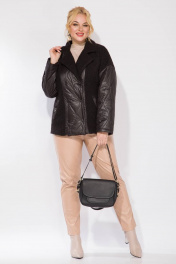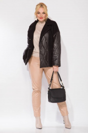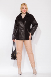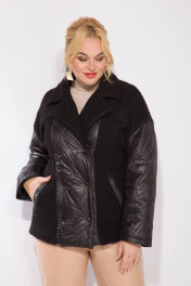 Стильный женский жакет, выполнен из сочетания стёганой ткани и эко-меха. Модель со спущенной линией плеча и длинным рукавом. Вороник отложной, с двубортной застежкой на кнопки. По полочке расположен продольный рельеф и прорезные карманы в рамку. Спинка прямая, выполнена из эко-меха. Модель на шелковой подкладке. Длина 72 см. Рукав - 63-64 см.