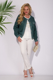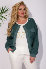 Стильный и оригинальный женский комплект - идеальный вариант для тех, кто любит привлекать внимание. Модель состоит из легчайшего хлопкового бомбера с оригинальной вышивкой ришелье, яркого топа! Бомбер свободного силуэта, с округлым вырезом горловины. По полочке и спинке предусмотрены кокетки, накладные карманы с клапаном. Застежка центральная на петли и пуговицы. Рукав длинный, на спущенном плече. Низ рукава обработан манжетам. Низ изделия на притачной планке, присборенной на резинку! Топ в комплекте выполнен из вискозы, без рукавов, с округлым вырезом горловины. По полочке расположена печать, накат. Практичный и элегантный комплект поможет создать образ, который будет отлично смотреться на любом типе фигуры. Бомбер – 65 см, рукав – 62 см. Топ – 62 см.