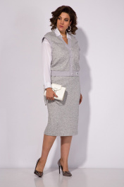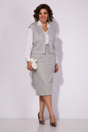 Двоека: трикотажный костюм юбка и жилетка с карманами Liliana 1347 светло-серый