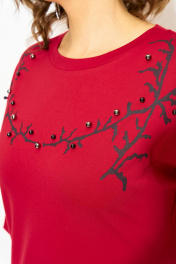 Трикотажное платье алого цвета подчеркнет Вашу женственность и добавит образу смелости! Материал, из которого выполнена модель - мягкий, комфортный и теплый! Силуэт платья прямого кроя, с рукавом длиной ¾-ти на спущенном плечевом поясе. Вырез горловины округлый, на мягкой планке. По бокам расположены разрезы на свободу движения. Изюминка данной модели- очаровательная печать накат с мерцающим эффектом украшенная бусинами и жемчугом. Такое платье можно носить с высокими сапогами, батальонами и даже с туфлями на каблуке. Добавьте к нему крупную бижутерию, кожаный ремень или перчатки - и создайте по истине элегантный и стильный образ! Длина по спинке – 115 см, рукав – 35 см.