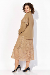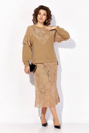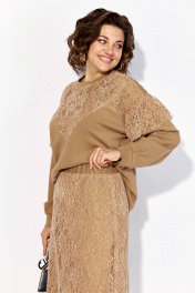 Представляем вашему вниманию уютный теплый женский костюм от бренда «Лилиана»! Он состоит из стильного джемпера и клешеной юбки миди– идеальный выбор для современных женщин, стремящихся совмещать комфорт и элегантность в повседневной жизни. Джемпер с округлым вырезом горловины, на мягкой планке свободного силуэта, со спущенной линией плеча. Рукав длинный, на притачной манжете с заложенными мягкими складками. Линия декольте украшена кокеткой из кружева. По плечу идет мягкий кружевной волан на сборку, что придает романтичность образу. Юбка выполнена из трикотажного кружева, на подкладке. Пояс круговая резинка. Демисезонный комплект универсален и подходит как для осени, так и для зимы и весны. Сочетая стиль и удобство, такой костюм станет незаменимым в вашем гардеробе! Длина юбки – 90 см. Джемпер длина по спинке – 65 см, рукав – 62 см.