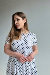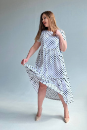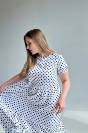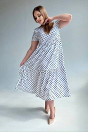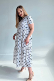Платье макси трапеция из вискозы и текстиля LindaLux 2-012 горох_белый