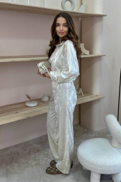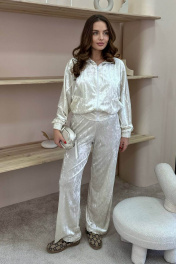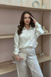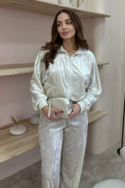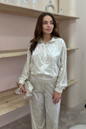 Белый спортивный костюм из бархата с разрезами на брюках LindaLux 3-022 молочный