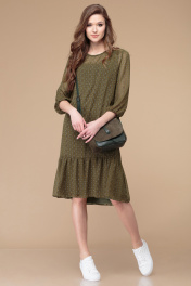 Демисезонное платье с воланом, поясом и принтом полоска Линия Л Б-1726 хаки - фото 1