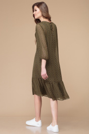 Демисезонное платье с воланом, поясом и принтом полоска Линия Л Б-1726 хаки - фото 3