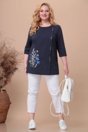 Туника летняя на рост 164 см с вышивкой и отворотом Линия Л Б-1871 тёмно-синий