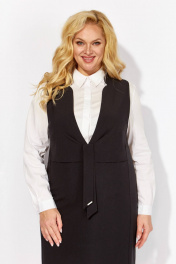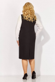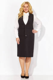 Повседневный текстильный сарафан средней длины на рост 164 см. Силуэт полуприлегающий. Вырез горловины фигурный. Перед сарафана с мягкой нагрудной вытачкой в виде складки с декоративным пояском, дополненным металлической нашивкой. По спинке плечевые вытачки и средний шов со шлицей.