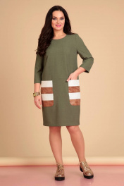 Платье из текстиля с длиной 93 см на каждый день Liona Style 623 хаки