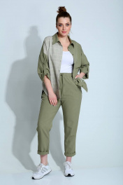 Демисезонный женский комплект рубашка и брюки в клетку Liona Style 790 зеленый