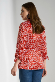 Жакет с воротником пиджачного типа и центральной застёжкой на петли и пуговицы. Перед с карманами с листочками в нижней части. По переду и спинке рельефы со вставленным кантом. Спинка со средним швом. Рукава втачные, частично со сборкой на резинку и декоративными завязками по низу. Изделие на подкладке. ВОЗМОЖНА ЗАМЕНА ФУРНИТУРЫ НА АНАЛОГИЧНУЮ ТАКОГО ЖЕ КАЧЕСТВА.