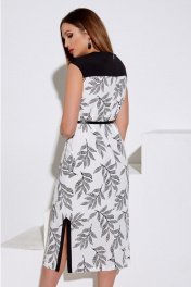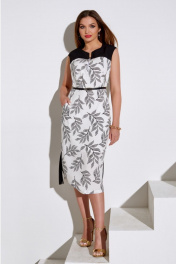 Платье с округлым вырезом горловины, спущенной линией плеча и разрезами по боковым швам с контрастной отделкой. Перед с отрезной кокеткой, карманами в рельефах и декоративной молнией от горловины. Заднее полотнище с отрезной кокеткой, талиевыми вытачками и потайной молнией в среднем шве. Изделие на подкладке. ПОЯС В КОМПЛЕКТ НЕ ВХОДИТ! ВОЗМОЖНА ЗАМЕНА ФУРНИТУРЫ НА АНАЛОГИЧНУЮ ТАКОГО ЖЕ КАЧЕСТВА.