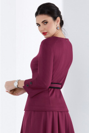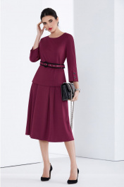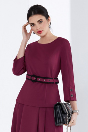 Костюм юбочный Свитшот с округлым вырезом горловины и съёмным поясом из ткани по талии. Перед с двумя рельефами. Спинка с талиевыми вытачками и потайной молнией в среднем шве. Рукава комбинированные: втачной +реглан. По низу рукавов шлица с пуговицами. Юбка на притачном поясе. Переднее полотнище с наклонными карманами к боковым швам и складками. Заднее полотнище со складками и потайной молнией в среднем шве. Юбка на подкладке. ВОЗМОЖНА ЗАМЕНА ФУРНИТУРЫ НА АНАЛОГИЧНУЮ ТАКОГО ЖЕ КАЧЕСТВА.
