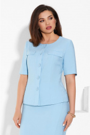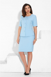 Костюм юбочный. Комплектация: Жакет, юбка, пояс. Дизайнерский костюм из легкой ткани со съемным поясом отличный выбор для этого лета. Жакет полуприлегающего силуэта с округлым вырезом, вырез оформлен отрезной обтачкой. Перед оформлен горизонтальной кокеткой с клапанами и отрезной планкой с центральной застежкой на петли и пуговицы. Спинка оформлена горизонтальной кокеткой и вертикальными рельефами, кокетка украшена декоративной нашивкой. Низ спинки жакета оформлен встречными складками. Рукава втачные, свободные с обтачной шлицей. Юбка карандаш с отрезным поясом и вертикальными рельефами по переду, застежка на потайную молнию в среднем шве спинки, по низу юбки шлица. Юбка на подкладке. ВОЗМОЖНА ЗАМЕНА ФУРНИТУРЫ НА АНАЛОГИЧНУЮ ТАКОГО ЖЕ КАЧЕСТВА.